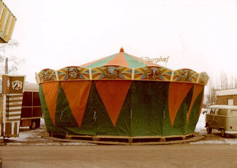 Aus der ehemaligen Sackfabrik wurde ein Konfektionsbetrieb für LKW-Planen, Karussel- und Autoscooter-Dächer sowie Planen für Holz- und Stahlrohr-Zelte.